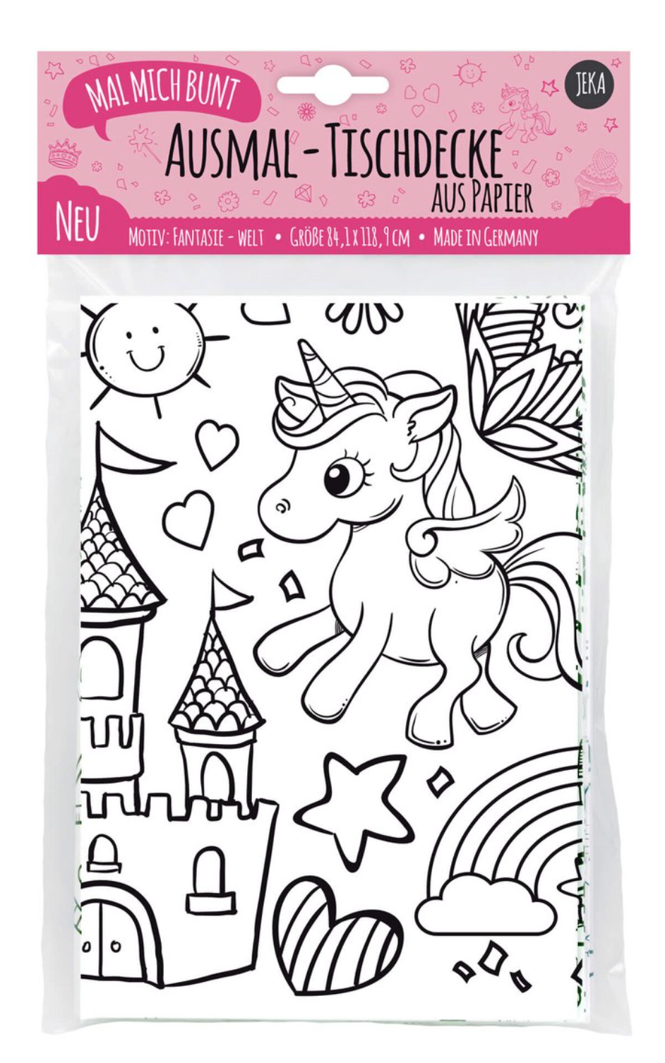 An die Stifte, fertig – losgemalt. Ideal für Kindergeburtstage, Familienfeiern oder Nachmittagen mit Freunden: Auf unserer Ausmal-Tischdecke kann fleißig entdeckt und gemalt werden. Das bringt Farbe auf den Tisch und Spaß in die Runde. In der Fantasiewelt warten viele Einhörner, Prinzessinnen und Schlösser darauf kunterbunt ausgemalt werden. Für jedes Alter sind Bilder und kleine Ausmalspiele dabei. So können auch Kinder verschiedenen Alters zusammen Spaß haben.