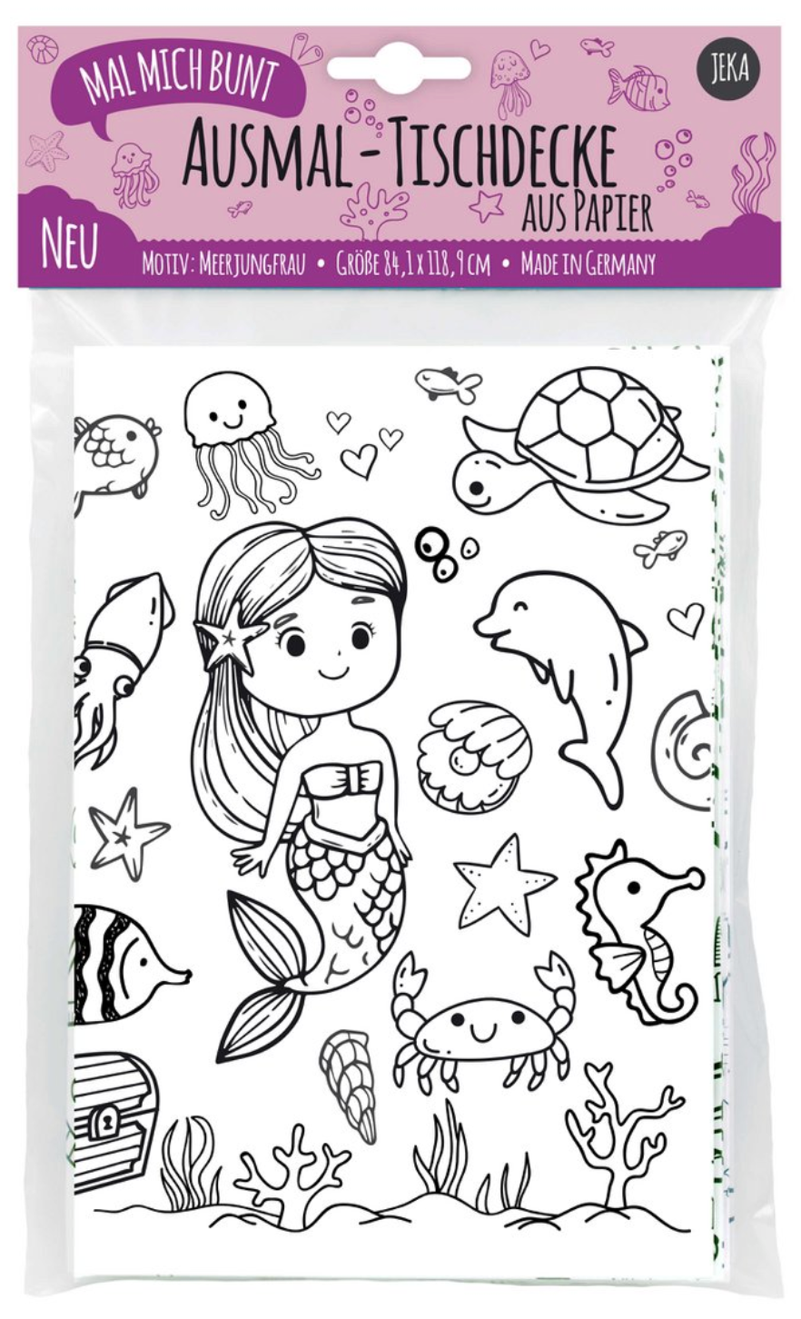 An die Stifte, fertig – losgemalt. Ideal für Kindergeburtstage, Familienfeiern oder Nachmittagen mit Freunden: Auf unserer Ausmal-Tischdecke kann fleißig entdeckt und gemalt werden. Das bringt Farbe auf den Tisch und Spaß in die Runde. Auf unserer Meerjungfrau-Tischdecke warten die viele Ausmalbilder darauf, kunterbunt ausgemalt zu werden. Für jedes Alter sind Bilder und kleine Ausmalspiele dabei. So können auch Kinder verschiedenen Alters zusammen Spaß haben.