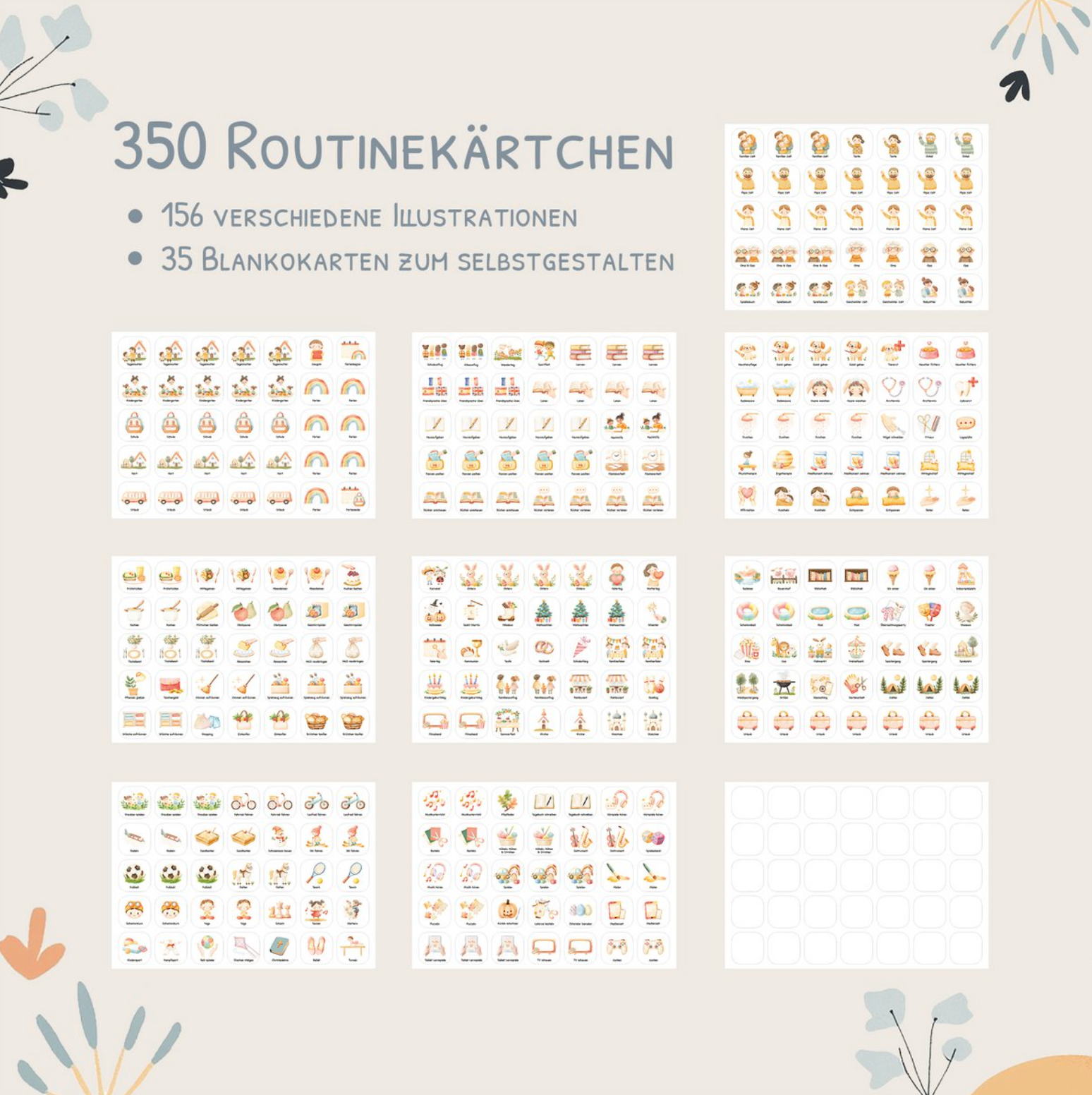 - Inkl. 350 Routinekärtchen mit 156 liebevollen Bildern + Blankokarten
