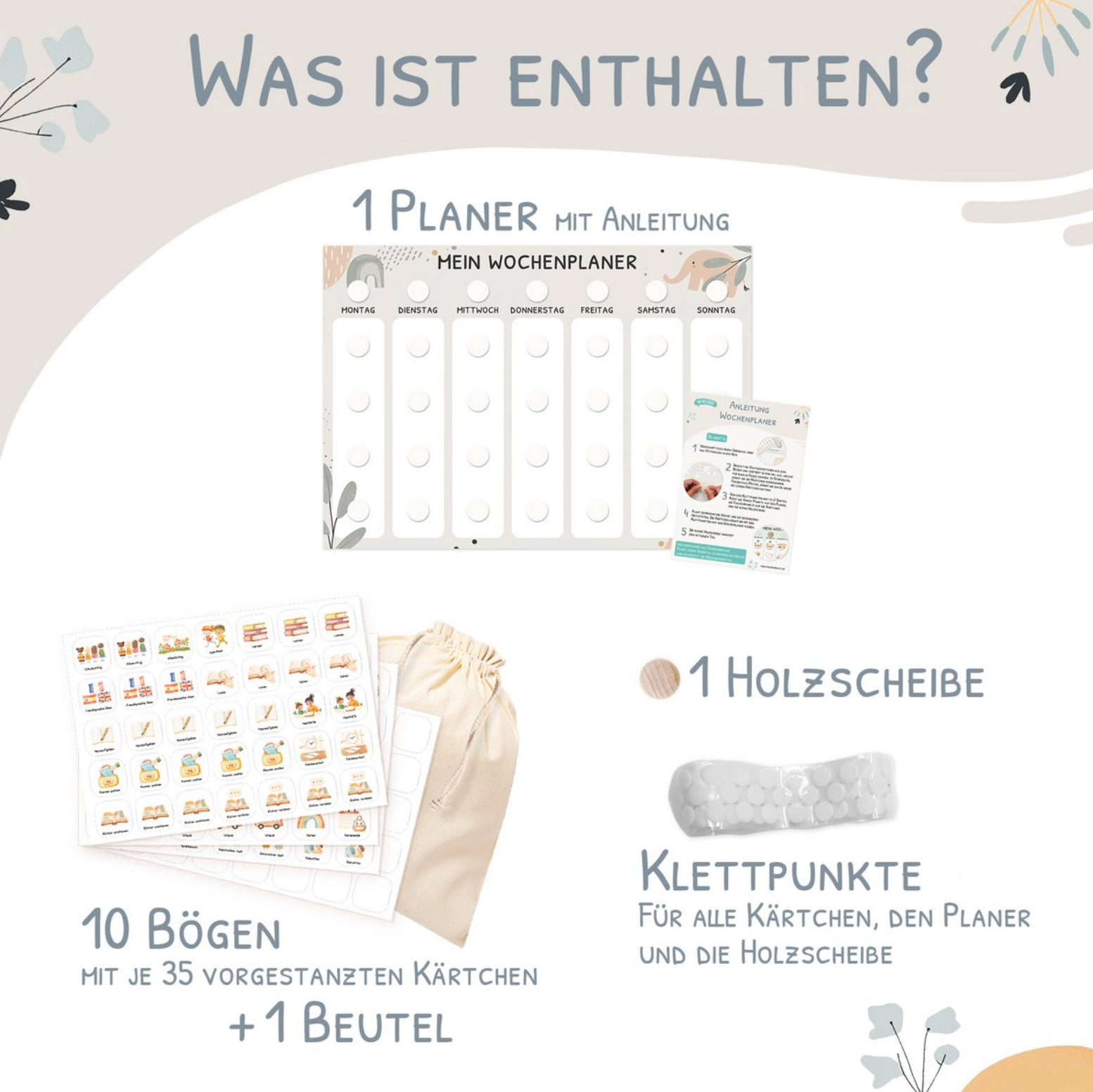 Wochenplaner Kinder inkl. 350 Routinekärtchen - Motiv Kleiner Elefant