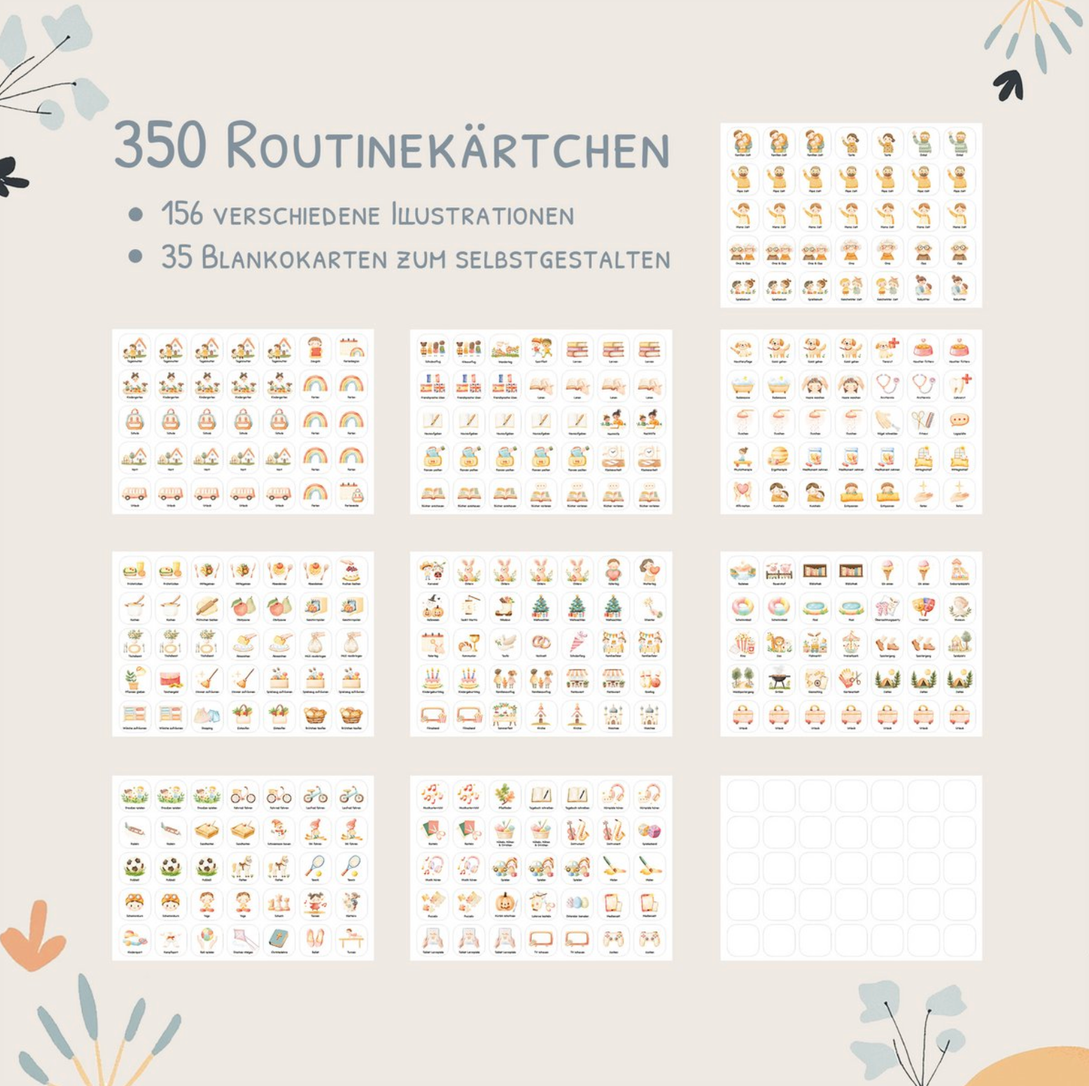 - Inkl. 350 Routinekärtchen mit 156 liebevollen Bildern + Blankokarten